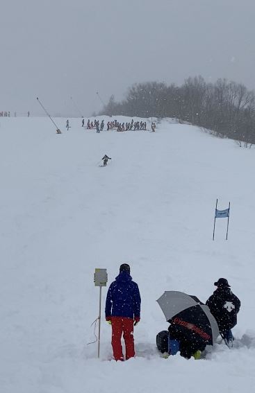 いわゆる脚を外に出し過ぎるとこの雪ではバランスは崩しやすく、斬れの中にもコンパクトにまとめる人は点数が出るのでは・・・・ってことです