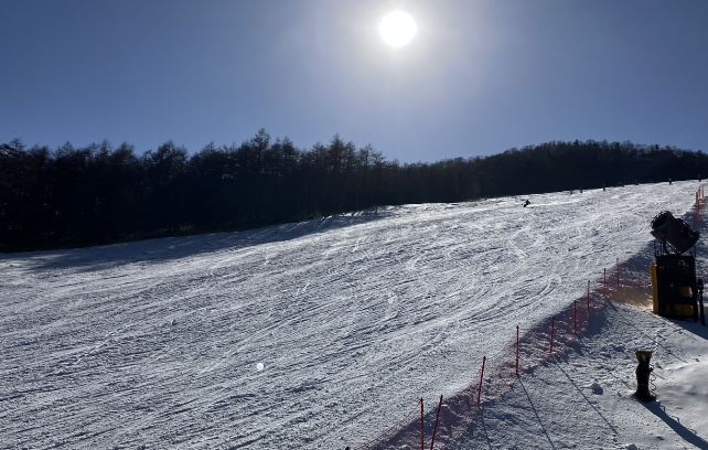 お昼頃になると、多くの人がランチ休憩をしてるでのゲレンデはガラガラ