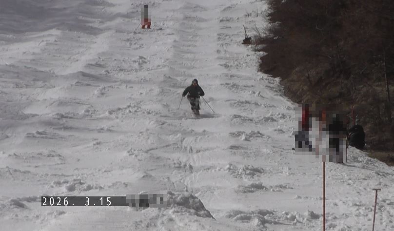 この日のゲレンデのグサグサ度は”6”(maxを10)3月中旬としては良い方