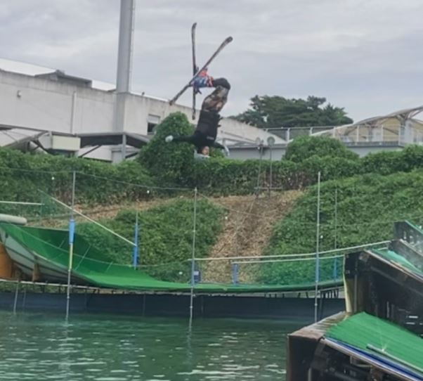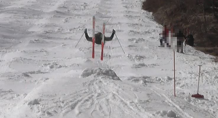 「高く上に跳んで」って分かってるけど、雪上ではビビリが入ってる